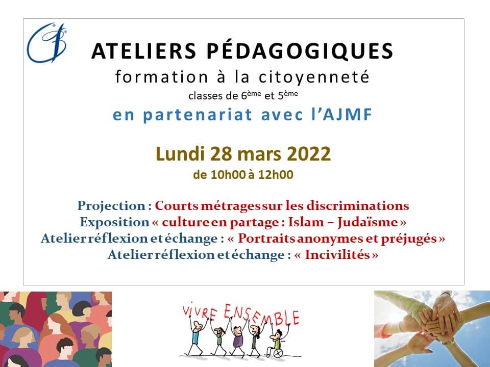 Ces ateliers sont organisés par l’association partenaire AJMF (Amitié Judéo Musulmane de France) qui interviendra dans l’établissement