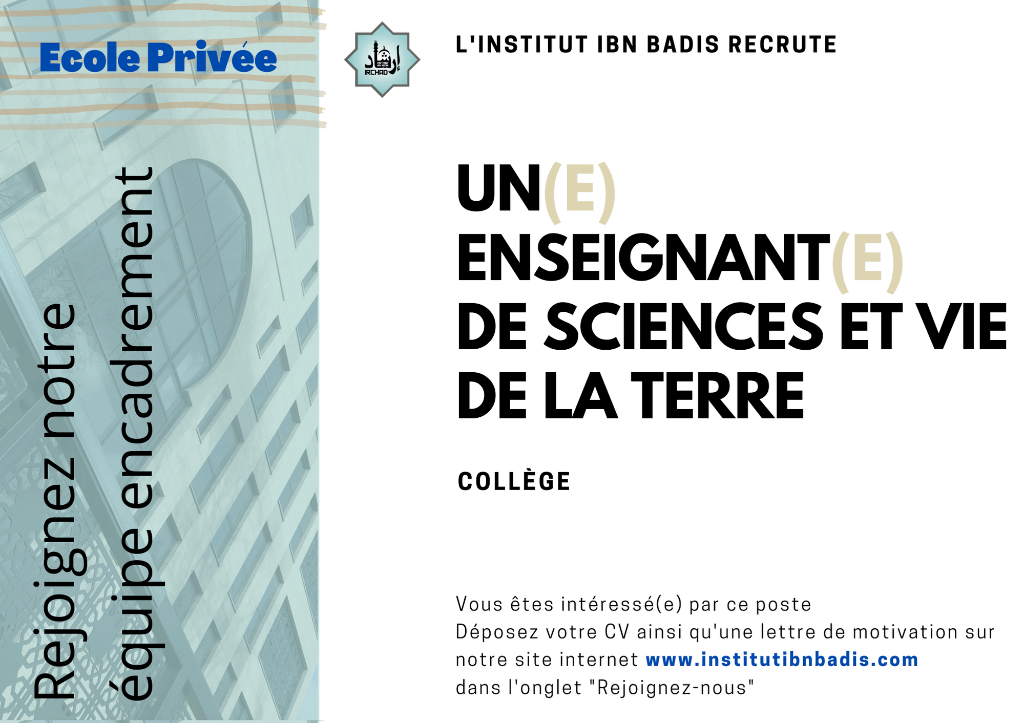 Placé(e) sous la responsabilité de la direction de l’établissement, vous devez concevoir et animer par une pédagogie de recherche, la formation d’élèves dans l’enseignement de SVT & Physique/Chimie.