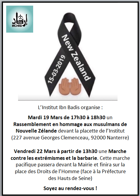 Retour en images sur le rassemblement de Mardi 19 Mars devant l’Institut Ibn Badis, en hommage aux victimes de l’attentat de Christchurch, et sur la Marche pacifique du Vendredi 22 Mars pour dénoncer les extrémismes et la barbarie.